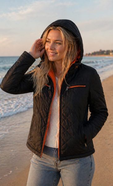 Leicht gesteppte Lederjacke : Schwarz